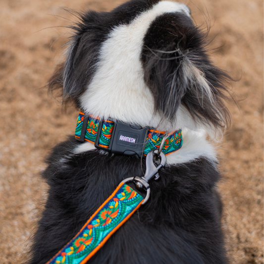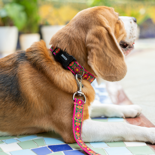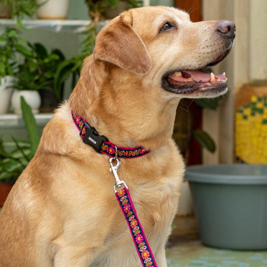 Our coordinating dog collar and leash set is sure to make heads turn and tails wag wherever you go!