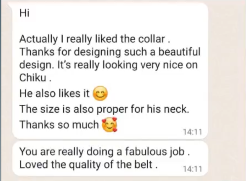 Each Coloursful Trails Dog Collar is handcrafted by skilled artisans in India, with attention to detail and quality. This collar is made with love, ensuring it’s as special as the bond you share with your pet.